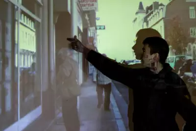 Ensuite, sans eux j’ai refait la promenade en vidéo. Plus tard à l’école nous avons projeté la vidéo et les élèves ont « re-joué » la promenade dans l’espace de l’image.